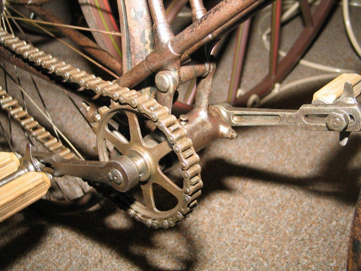 This rare 1889 Humber no. 5 light roadster was top of the line in 1889. If you read the text in the 1889 catalogue, they were really pround of this ingenious model. But only one year later, Humber was the first to introduce the diamond frame with straight saddle tube: the frame that ended al experimental models.